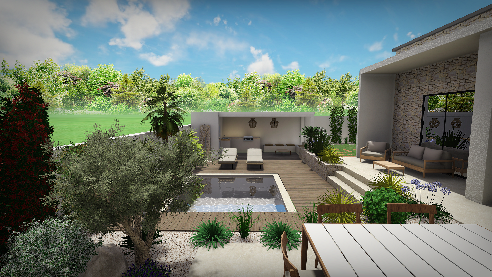 “Créez l’extérieur de vos rêves avec des aménagements 3D sur-mesure, alliant nature et design.”